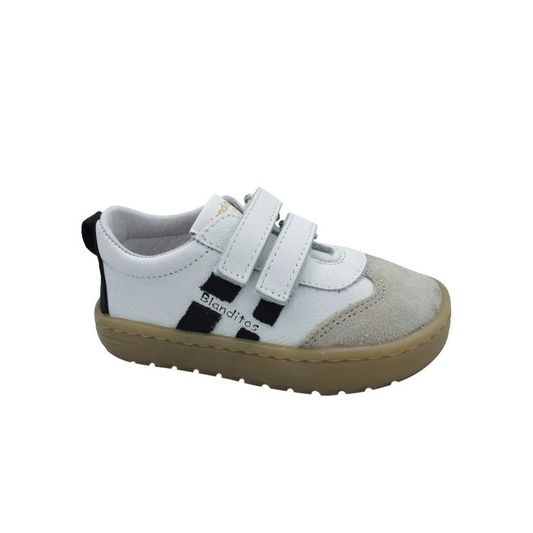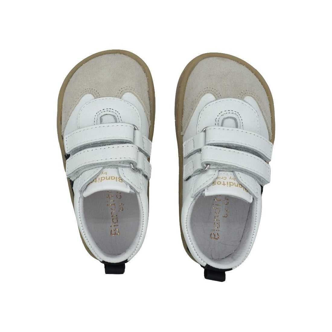 Las BLANDITOS - DEPORTIVA LISBOA están diseñadas para apoyar los primeros pasos y la marcha establecida, ofreciendo comodidad y flexibilidad excepcionales. Cuentan con detalles de rayas laterales de colores y una nueva horma anatómica que se ajusta de forma natural al pie. Su suela es de 3,5 mm, cosida y totalmente flexible, garantiza libertad de movimiento. Fabricadas 100% en España con piel napa de alta calidad y un práctico cierre de velcro, estas deportivas no tienen contrafuerte, lo que las hace especialmente blandas y cómodas para el día a día.