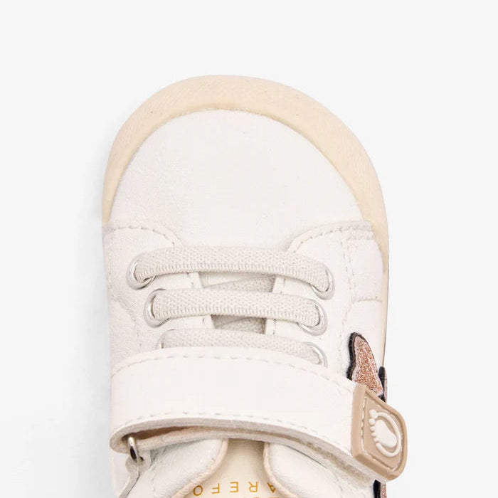 Las Zapatillas Respetuosas Glitter Corazones Blanca son perfectas para niñas que buscan confort y estilo en cada paso. Con su diseño brillante en blanco con detalles de corazones dorados, combinan moda y funcionalidad. Con una sujeción adaptable y flexibilidad total, su horma amplia y neutra asegura un ajuste cómodo todo el día.