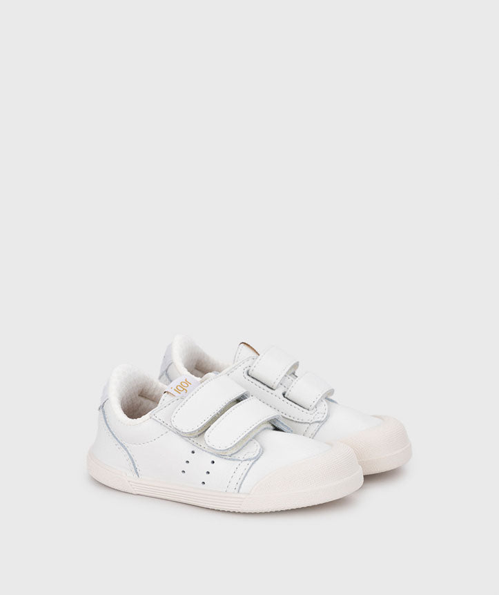 Deportivos de piel casual de concepto barefoot, cero drop, flexible y blandito, plantilla extraíble y cierre adherente para mayor ajuste y autonomía.