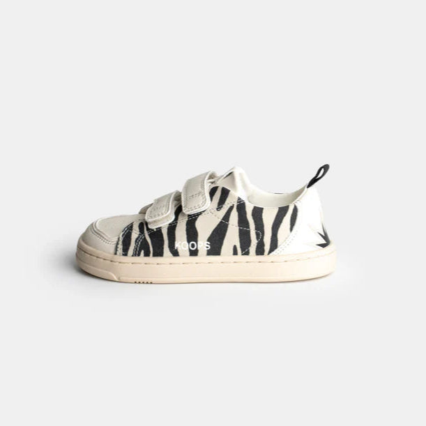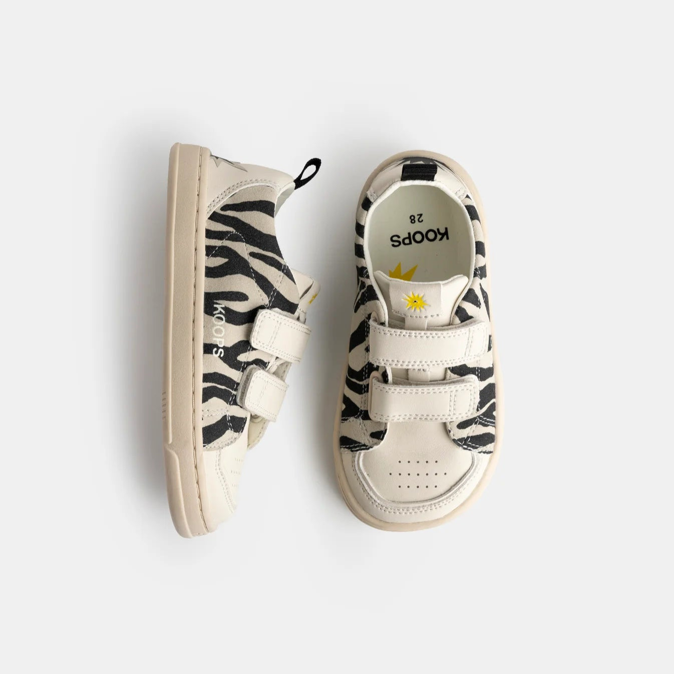 La zapatilla KOOPS - RAFI CEBRA ofrece un ajuste personalizado gracias a su correa de velcro en el empeine. Su puntera ancha permite la libre movilidad de los dedos, mejorando la estabilidad y el equilibrio. La suela plana, delgada y flexible fomenta una correcta postura y el ejercicio natural del pie. Su diseño sin contrafuerte evita rigideces, mientras que la plantilla extraíble con tecnología Sanitized aporta transpirabilidad y comodidad. Fabricada con serraje y piel vegana, además de una suela hecha de botellas de plástico recicladas, combina sostenibilidad y confort en cada paso.