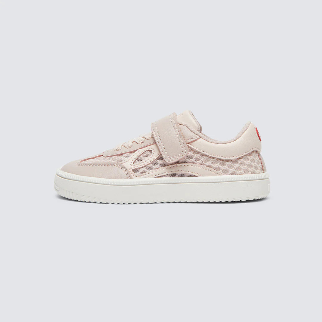 - Upper: Combinación de piezas de piel sintética con “Mesh”, un tejido de malla textil que permite el flujo de aire para mantener los pies de tu peque frescos y secos durante el verano.