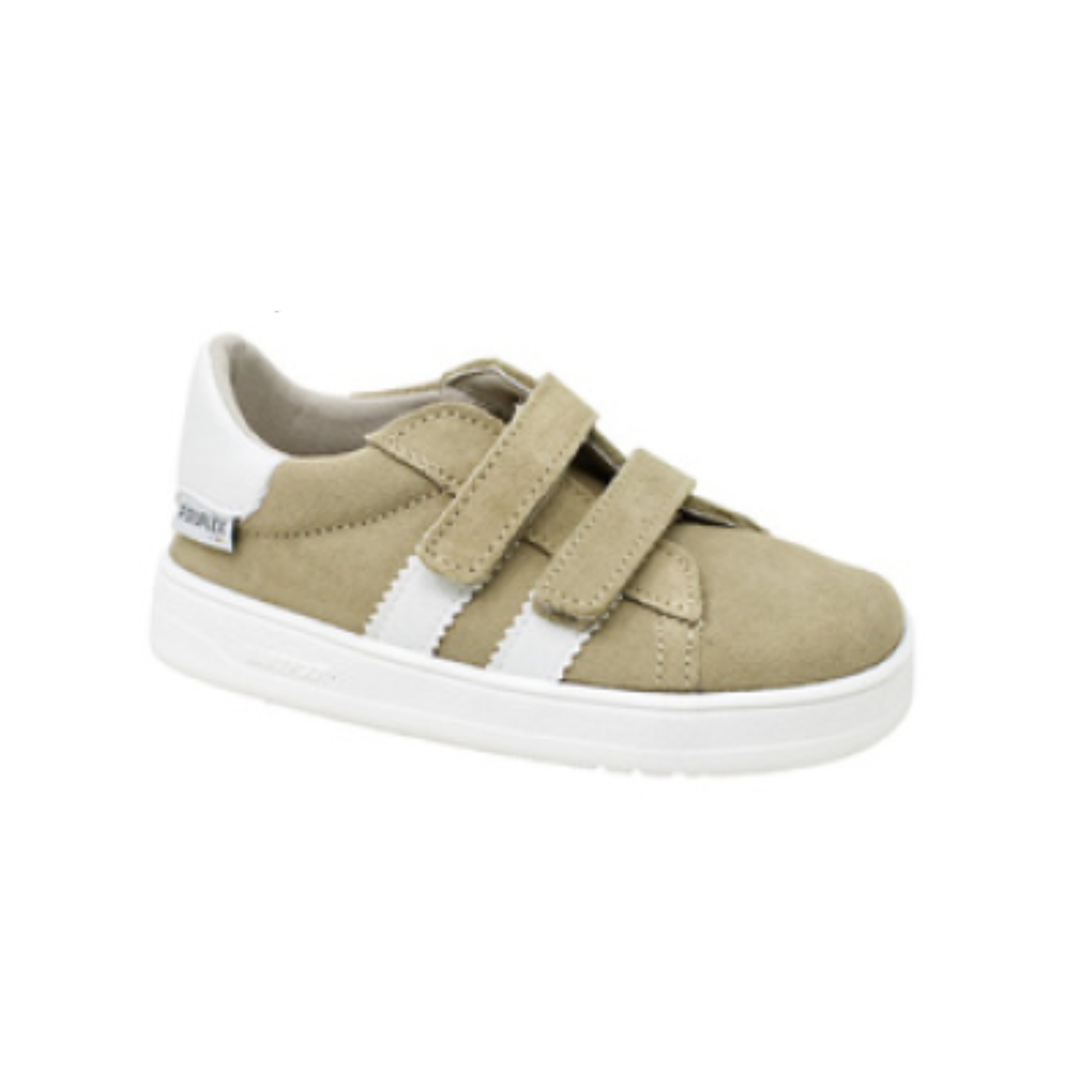 Esta deportiva barefoot PIRUFLEX, confeccionada en serraje beige de alta calidad, combina confort y estilo minimalista. Su diseño incluye dos líneas blancas que aportan un detalle sutil pero distintivo. Equipada con doble cierre de velcro, garantiza un ajuste seguro y fácil, perfecto para quienes buscan una calzado que favorezca la movilidad natural del pie sin sacrificar soporte. Ideal para un uso diario que prioriza la salud y el bienestar podal.